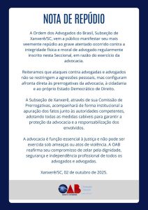 A Ordem dos Advogados do Brasil (OAB), subseção de Xanxerê, chegou a emitir uma nota de repúdio quanto aos fatos, afirmando estar acompanhando o caso junto às autoridades competentes.